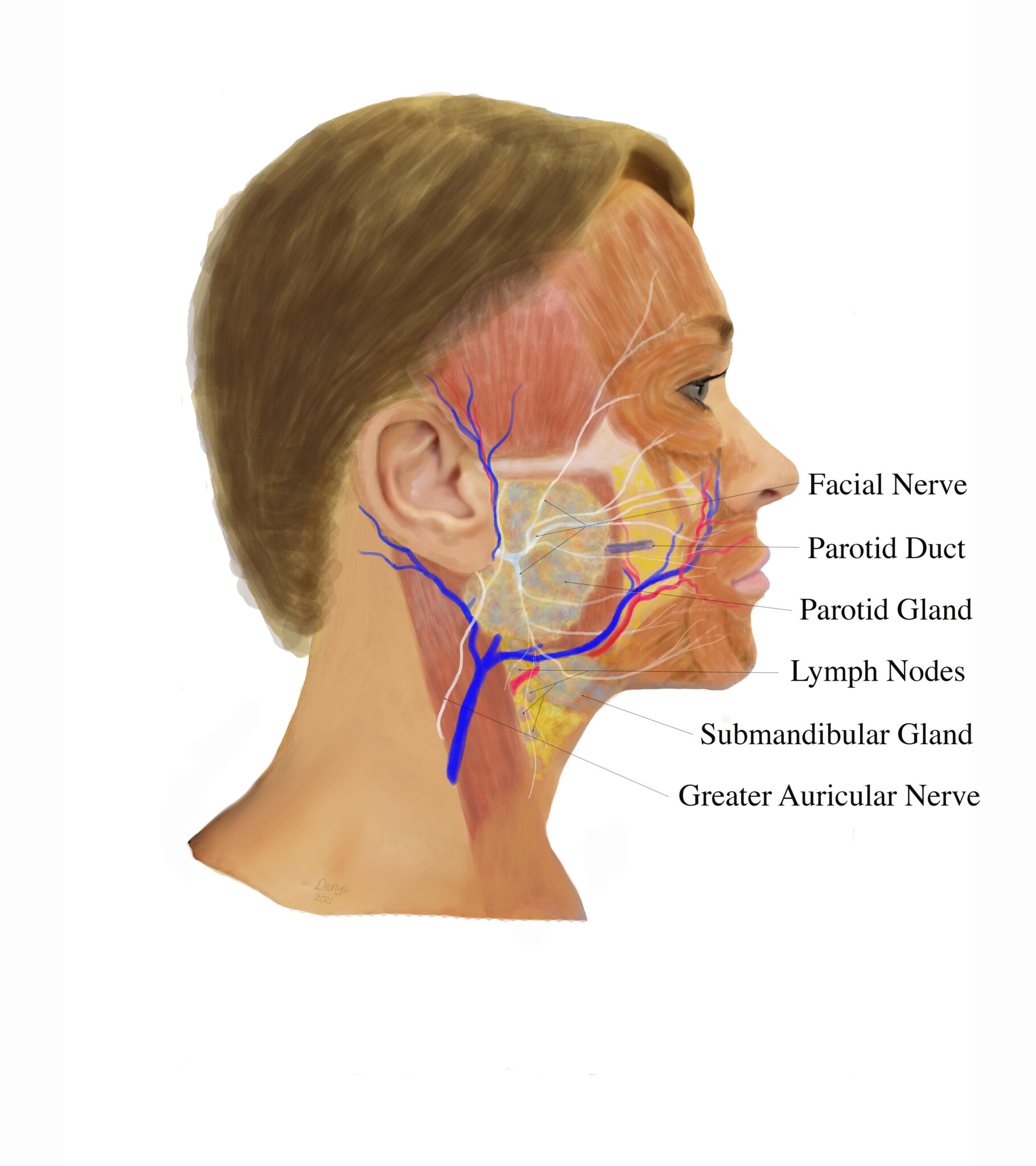 The parotid is a gland that makes and passes saliva into the mouth. There is one parotid gland on each side of the face. Saliva helps with eating, speaking, and keeping the mouth clean. Tumors can occur in the parotid gland. While most of these tumors are not cancer they should be removed (link to benign tumor handout). Cancerous tumors of the parotid gland are best treated with surgery, and may benefit from radiation and chemotherapy after surgery. Sometimes, surgery is done for inflammation of the parotid gland that cannot be treated another way.